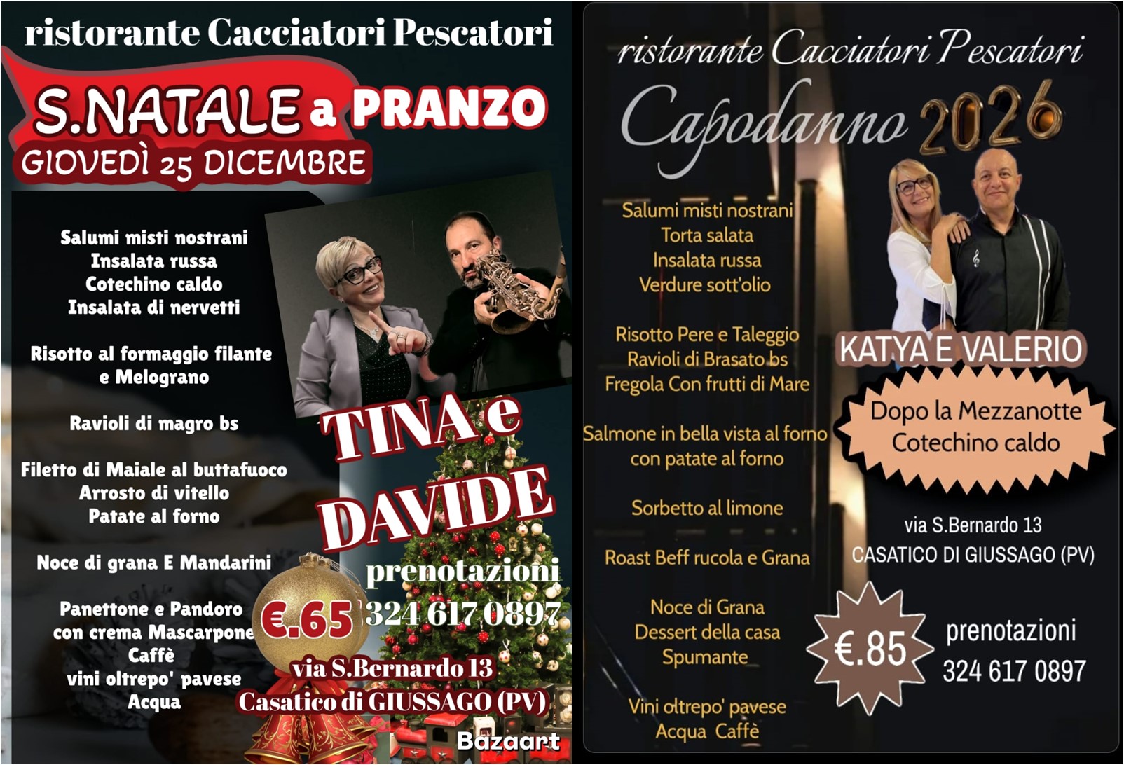 Il Ristorante Cacciatori e Pescatori vi proppone il menu' di